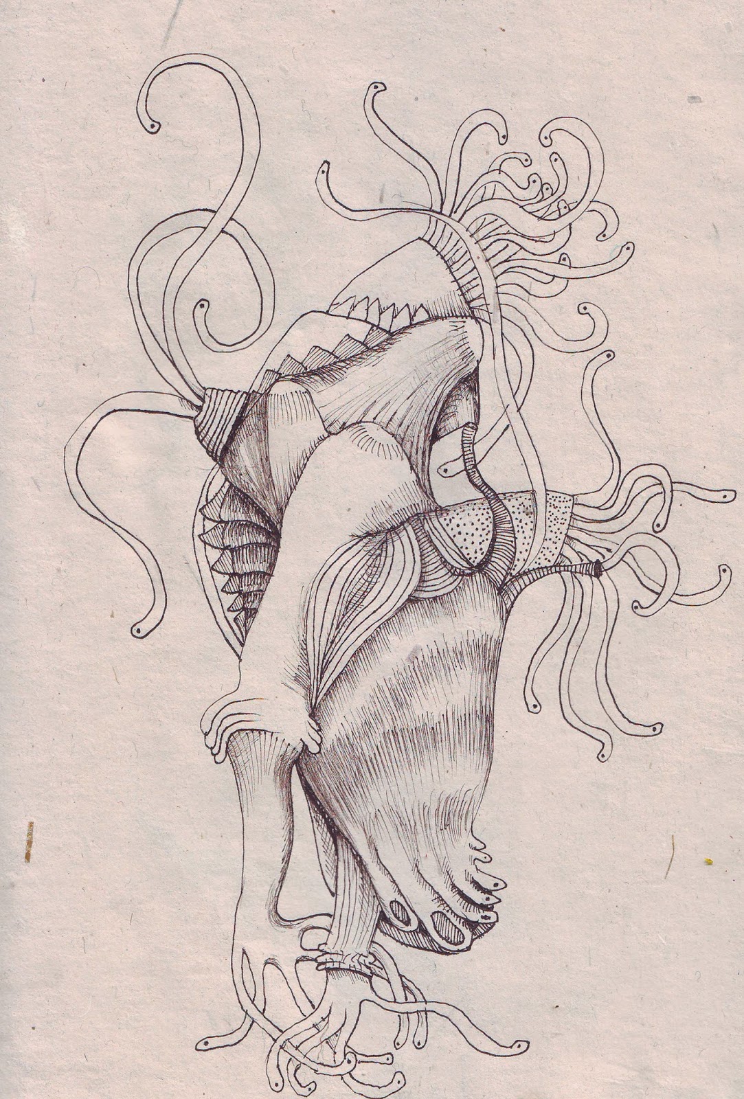 Rysunki to skojarzenia przypadkowych form, myśli, odczucia - twory plastyczne powołane do życia bez konkretnych intencji, ilustrujące nie tylko przelotne refleksje, ale również treści kryjące się w mojej podświadomości.